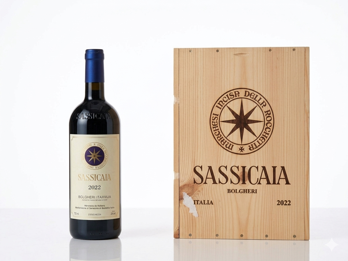 Resumo Técnico Composição: Tradicionalmente um lote de Cabernet Sauvignon e Cabernet Franc. Para 2022, a mistura é de 88% Cabernet Sauvignon e 12% Cabernet Franc. Teor Alcoólico: 13,5% vol. Envelhecimento: Passou 24 meses em barricas de carvalho francês (cerca de 40% novas). Perfil do Ano: 2022 foi um ano quente e seco. No entanto, o microclima de Bolgheri e a acidez natural do Sassicaia permitiram manter a frescura, resultando num vinho com concentração e estrutura vertical.