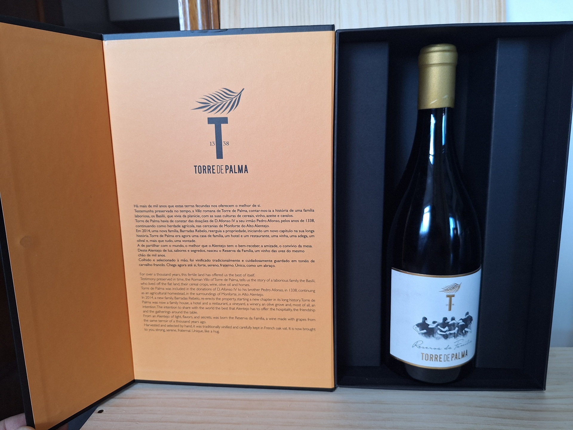 De uma região de luz, sabores e segredos, nasceu este vinho Torre de Palma, com uma longa história de mais de mil anos. Colhido e selecionado à mão, foi vinificado em depósitos de cimento e cuidadosamente guardado nas melhores barricas de carvalho francês. É este tesouro que a família Barradas Rebelo partilha agora consigo, como um abraço. Forte, fraterno e único. Edição muito exclusiva e familiar, limitada a 1000 garrafas numeradas.